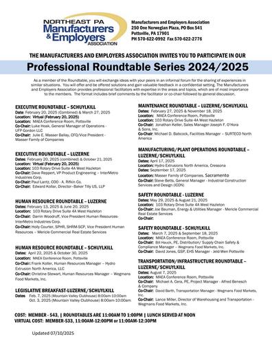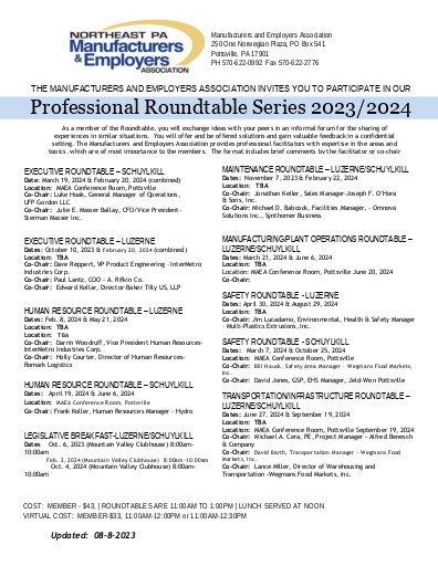 Downloads (all) Home » Roundtables Folder Roundtables Search for documents Find by title or description… Search in Document title and description Document contents, title and description Search Reset Home » Roundtables » Roundtable Schedule 2024-2025 pdf Roundtable Schedule 2024-2025 Popular Published on 10 July 2025 Modified on 11 July 2025 By admin Download (pdf, 188 KB) Roundtable Schedule 2024-2025 07-10-25.pdf Home » Roundtables » Roundtable Schedule 2023-2024 Document Roundtable Schedule 2023-2024 Popular Published on 26 October 2023 Modified on 11 July 2025 By Anonymous Download (docx, 91 KB) Roundtable Schedule 2023-2024 8-8-23.docx Home » Roundtables » Roundtable Schedule 2022-2023 Document Roundtable Schedule 2022-2023 Popular Published on 02 September 2022 Modified on 11 July 2025 By Anonymous Download (docx, 90 KB) Roundtable Schedule 2022-2023.docx